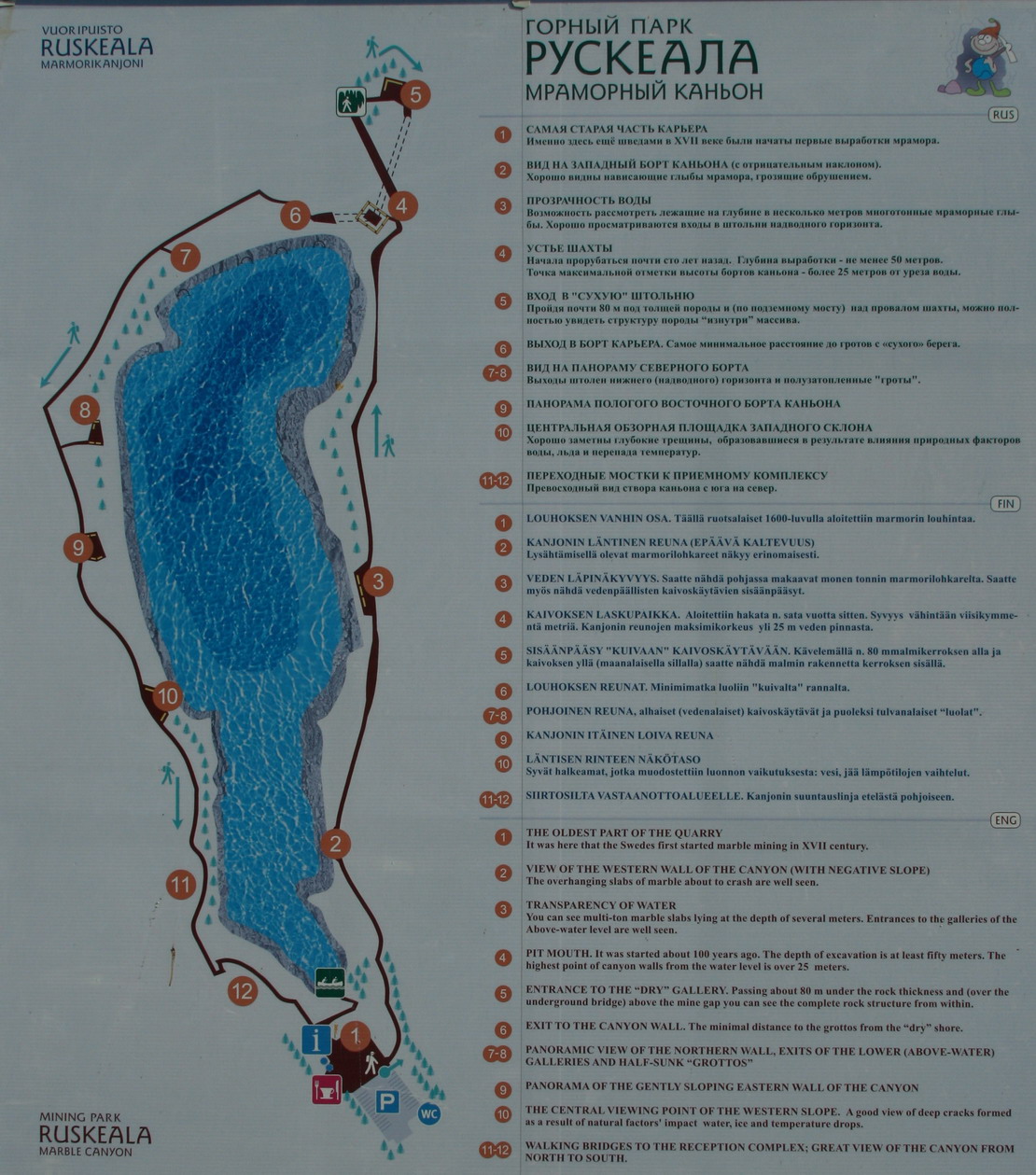 Когда во время второй мировой войны финны уходили из окрестностей Рускеалы, они взорвали перемычки с грунтовыми водами и карьер был затоплен. Восстановить его не удалось.