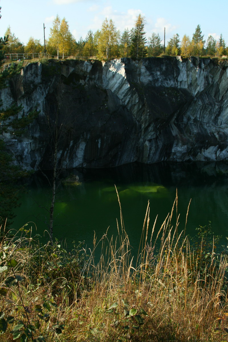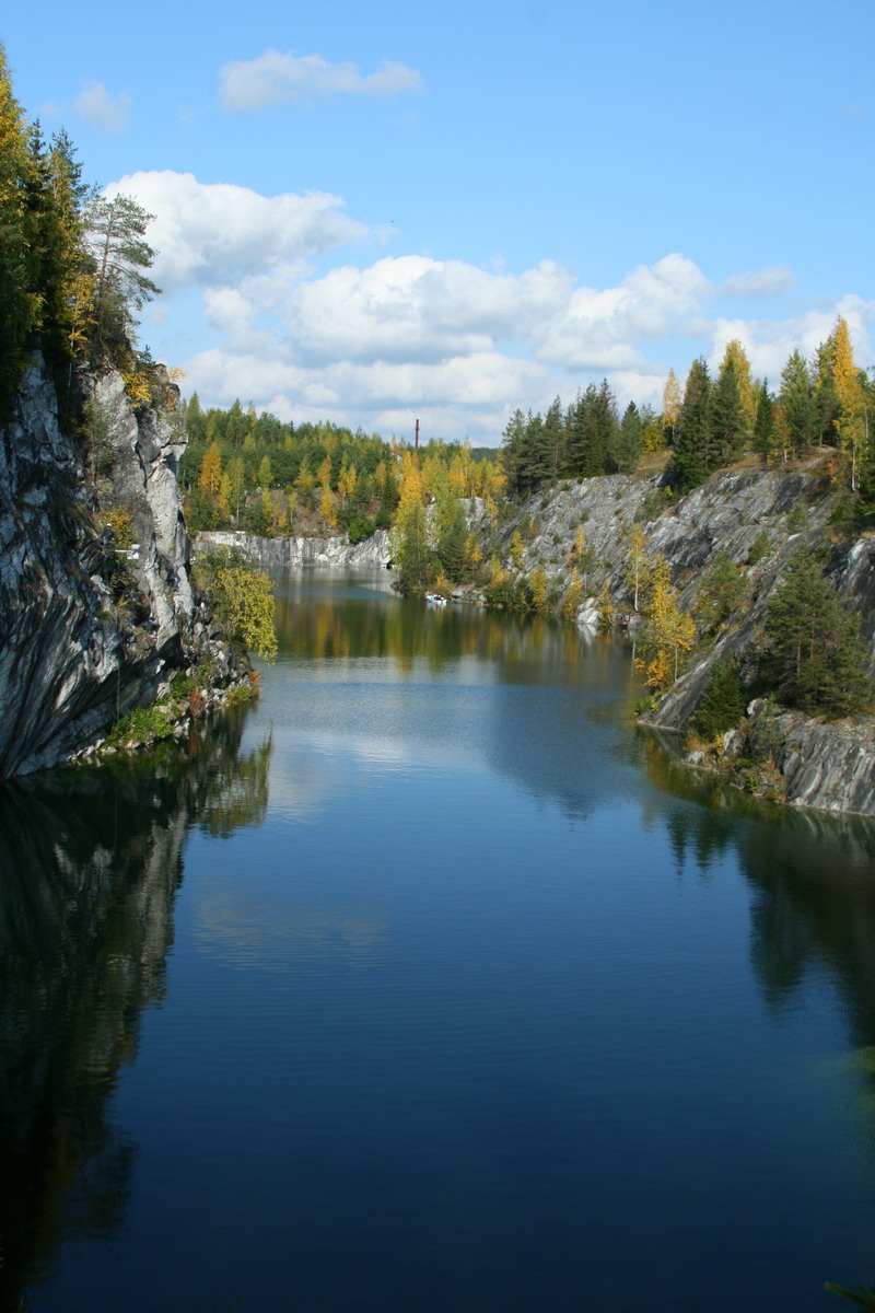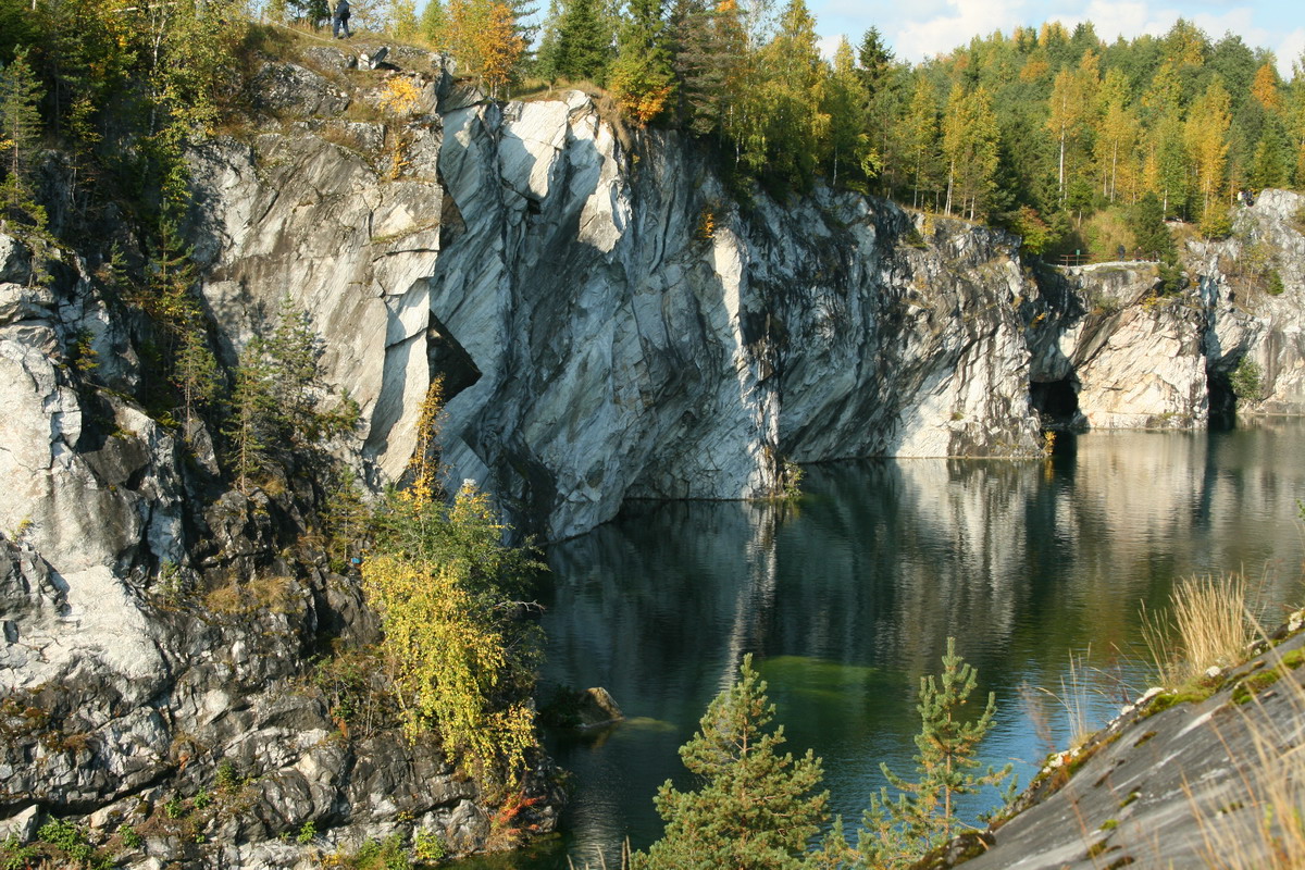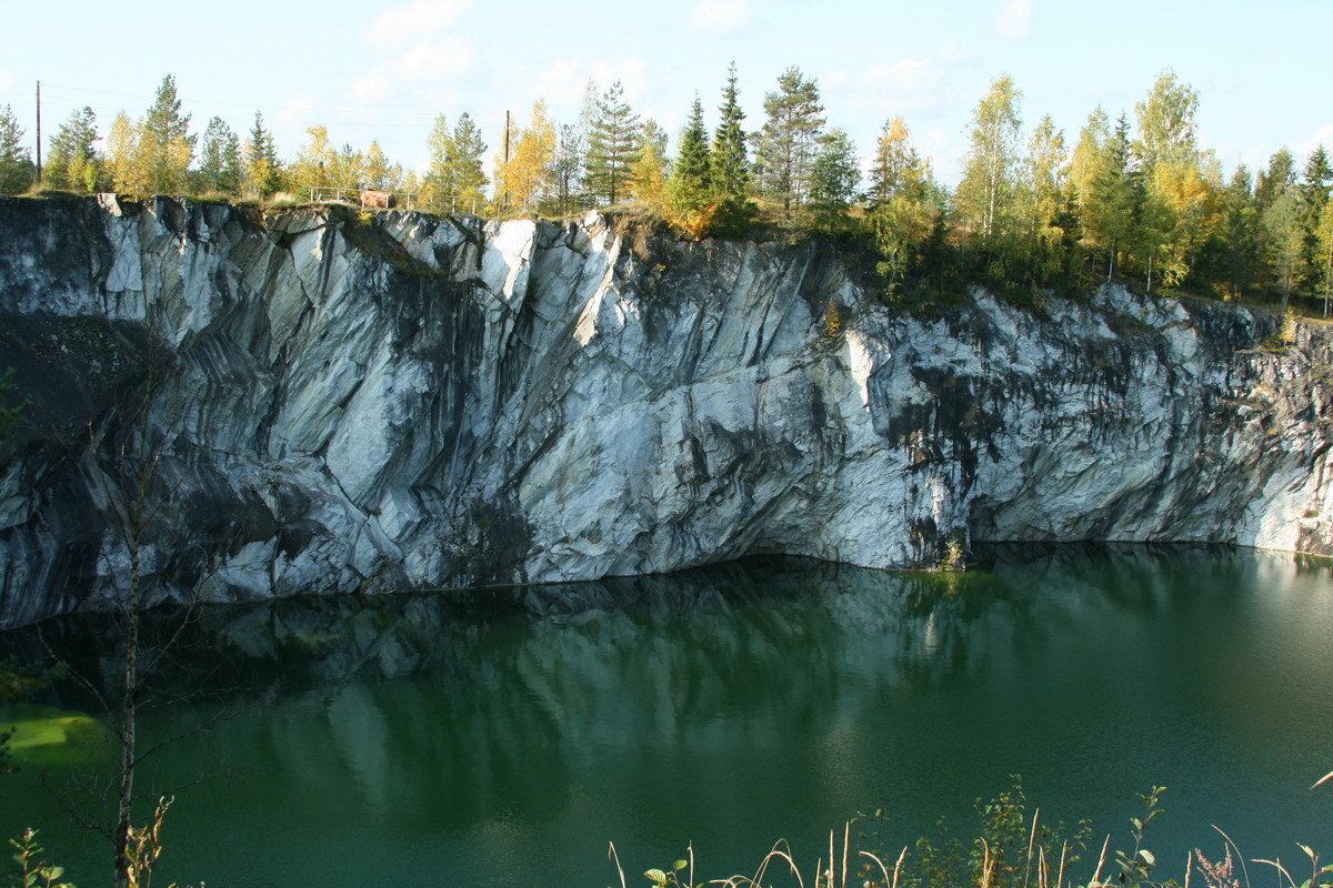 Природа вокруг очень живописна, особенно осенью. Вдоль карьера валяется огромное количество мраморных осколков, их можно набрать себе на память: никто не возражает.