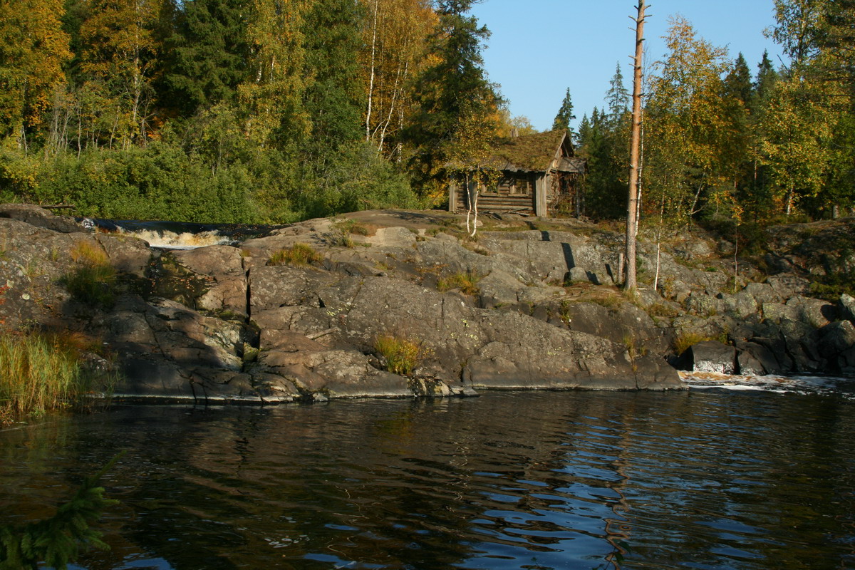 На обратном пути надо посмотреть водопады. Они находятся у самой дороги Сортавала – Рускеала, там даже жарят и продают шашлыки. Водопад очень симпатичный. На самом верху стоит прозрачная избушка. Если не присматриваться, то выглядит очень не плохо.