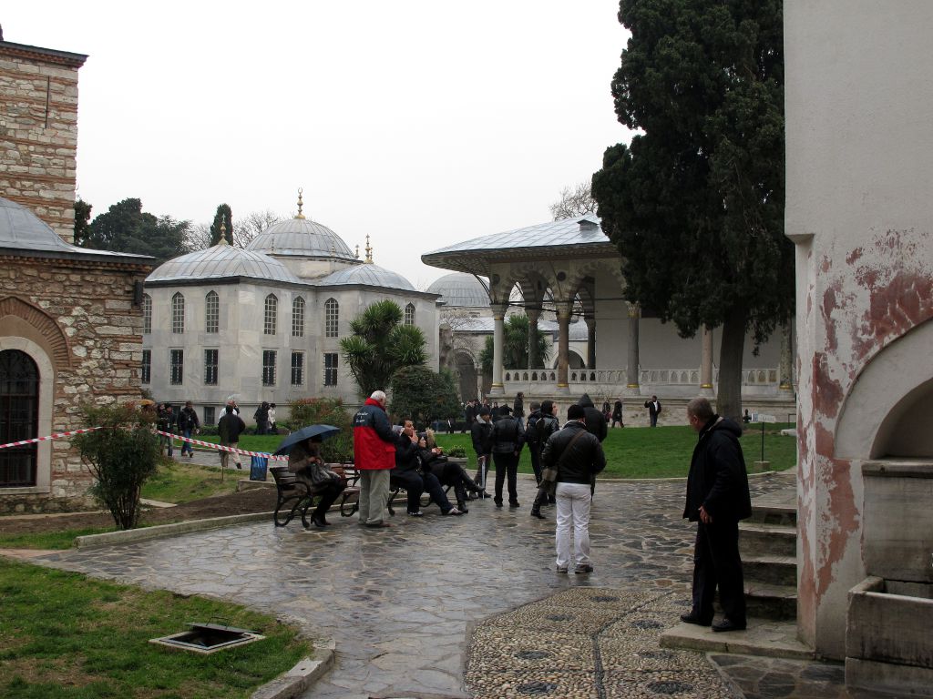 Тут же находятся музейные кассы. Оплатить билеты можно наличностью и по карте, стоит (начало 2012 года) 20 новых турецких лир на человека (примерно 9 USD). В билет не включено посещение помещений гарема, у них отдельная касса при входе в гарем. Если захочется посмотреть, придется выложить еще 15 лир на нос.