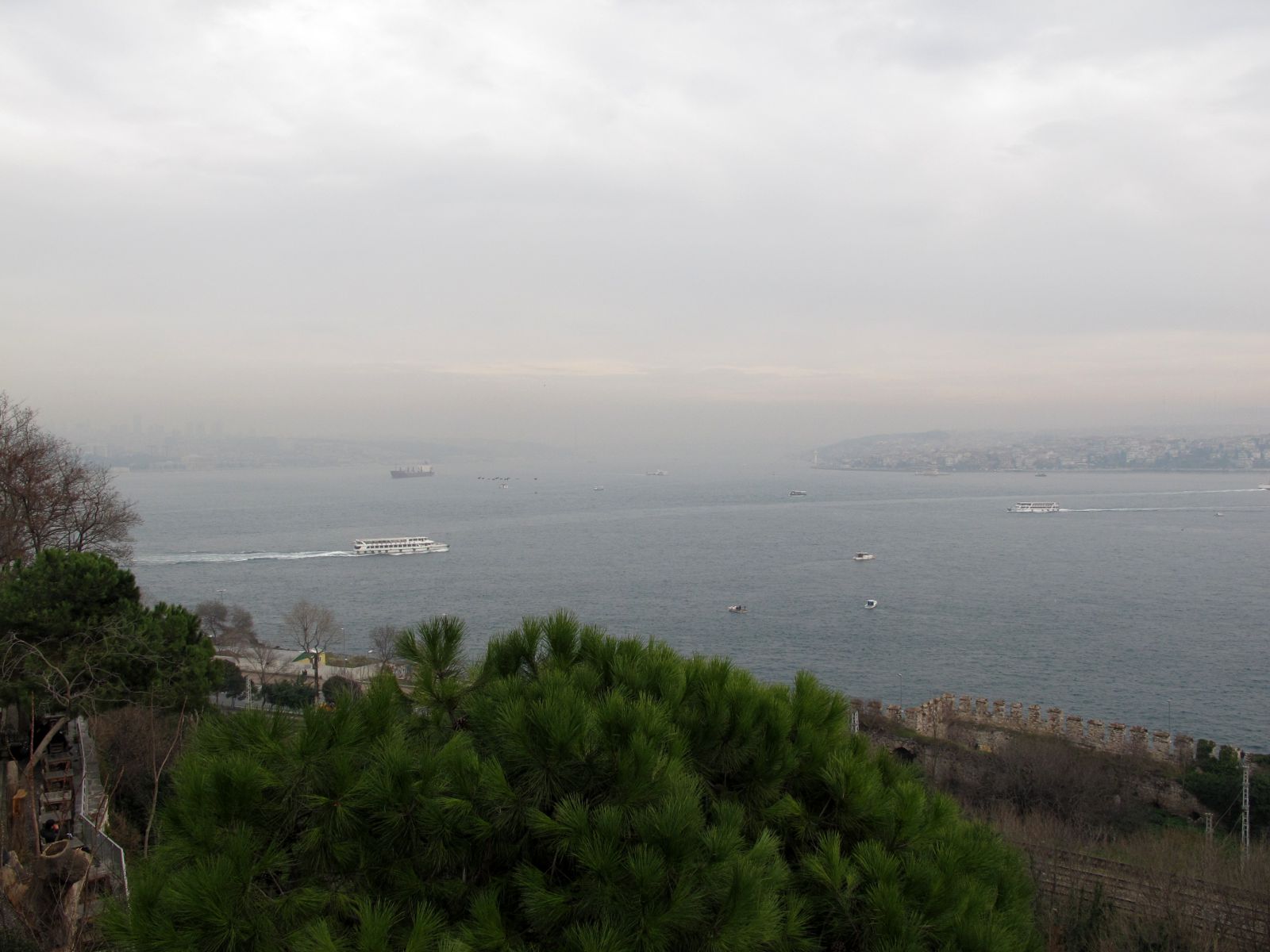 Пройдя все залы выходишь на террасу над Босфором. Ее посетить просто необходимо. Вдохнуть полной грудью свежий морской воздух, послушать крики чаек и полюбоваться на массу разнокалиберных корабликов, снующих по Босфору во все стороны. Ну или не снующих, а вылавливающих рыбу.