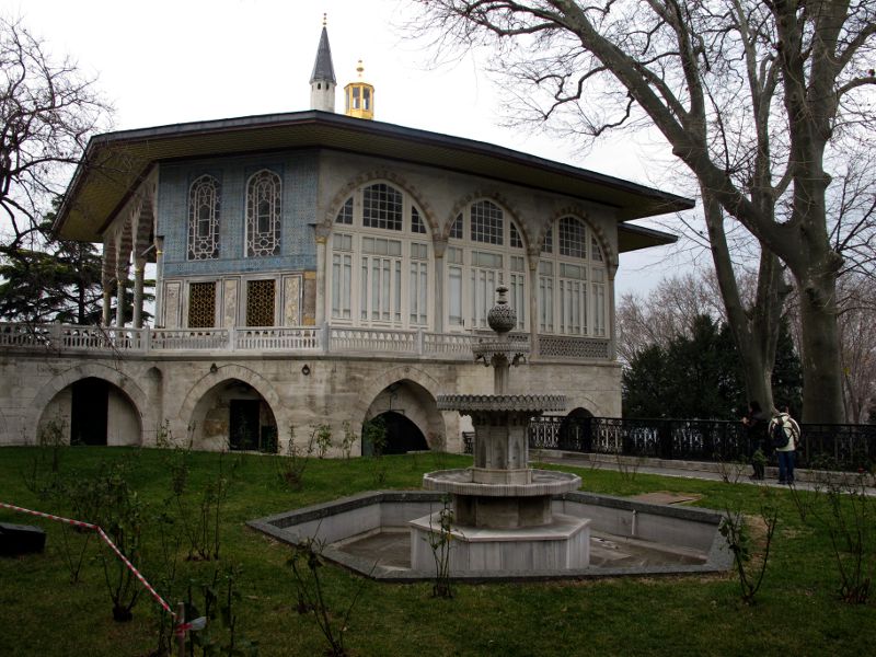 В нем есть пара фонтанов, очень много деревьев, и красивый вид на Босфор.