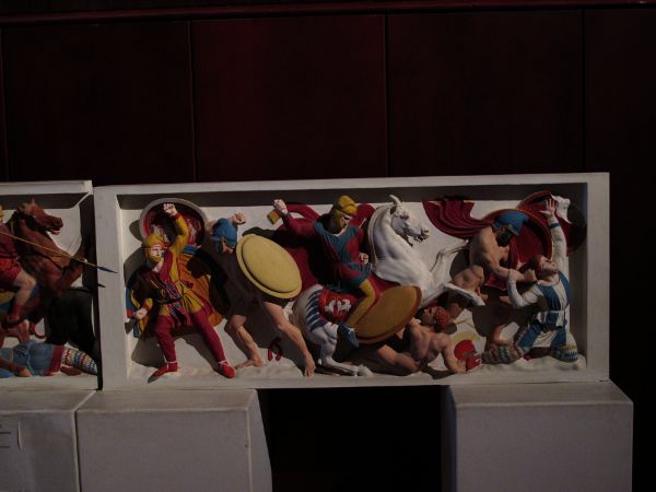Особо интересно было увидеть, как выглядели саркофаги после создания, Оказывается, они был раскрашены весьма яркими красками. Вот так выглядел барельеф в древности