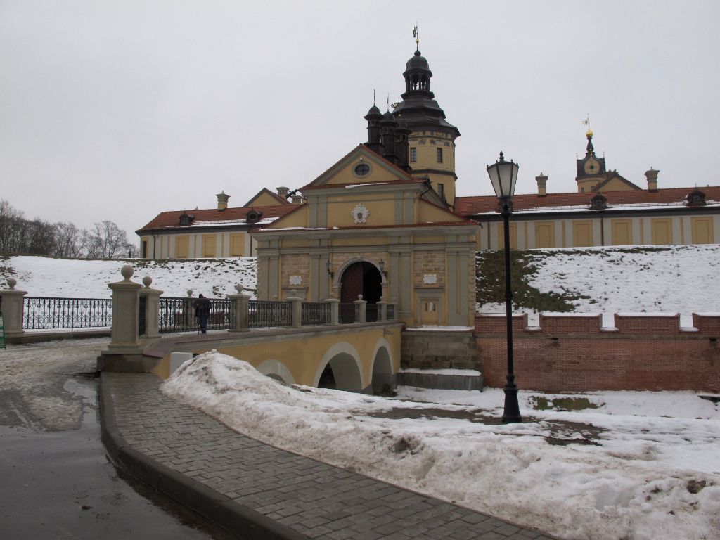 Благодаря ошибке на карте, путь до Несвижа превратился из 30 километров в 130 и приехали мы за час до закрытия замка. Этот замок больше напоминает дворец, хотя его постройка так же датируется XVI веком. Вход в замок вызывает у меня ассоциацию с Петропавловской крепостью.
