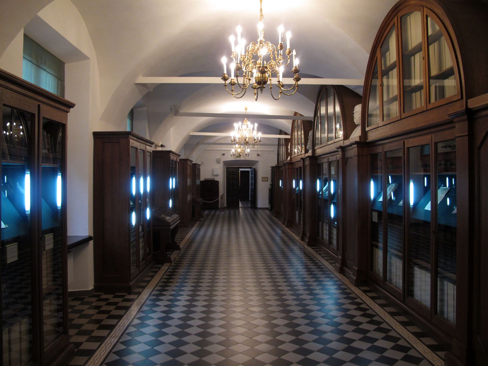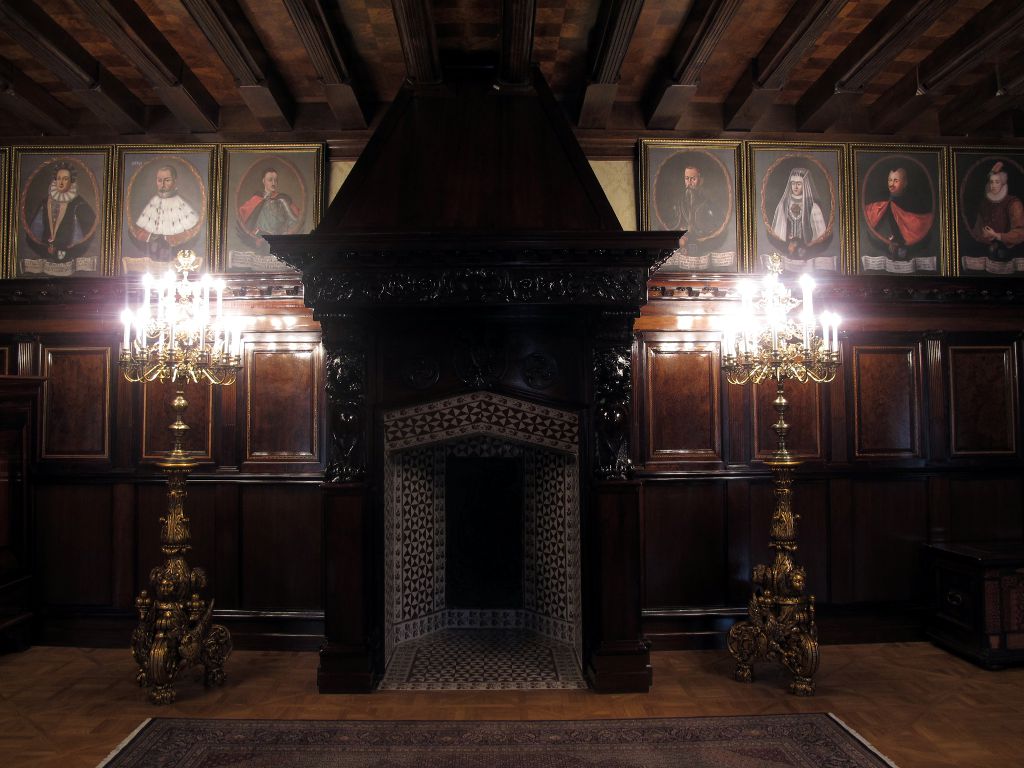 В замке две выставки. Первая посвящена истории замка. В ней можно увидеть старые карты