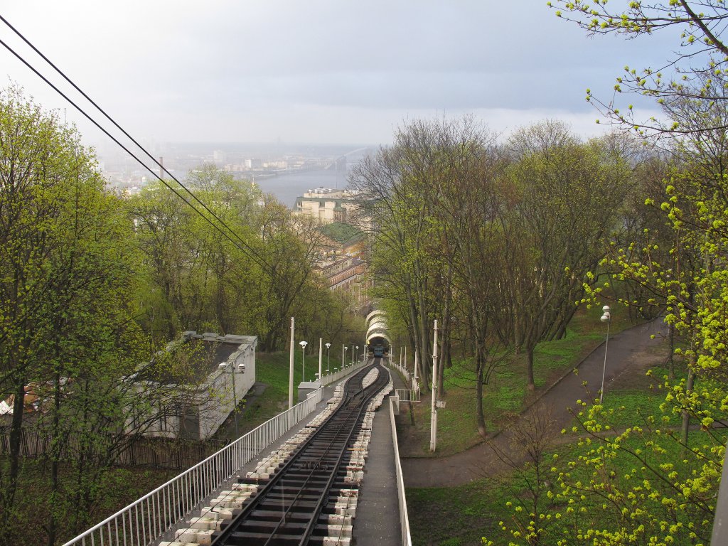 Вниз можно спуститься на фуникулере. Те же две гривны, что и обычный транспорт.