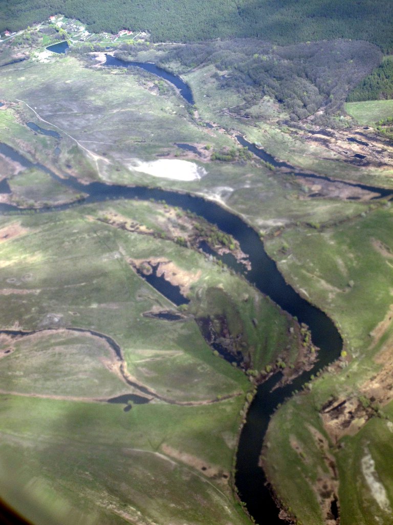 Внизу попадаем на берег Днепра. Того самого, до середины которого долетит пингвин. Красивые панорамы.