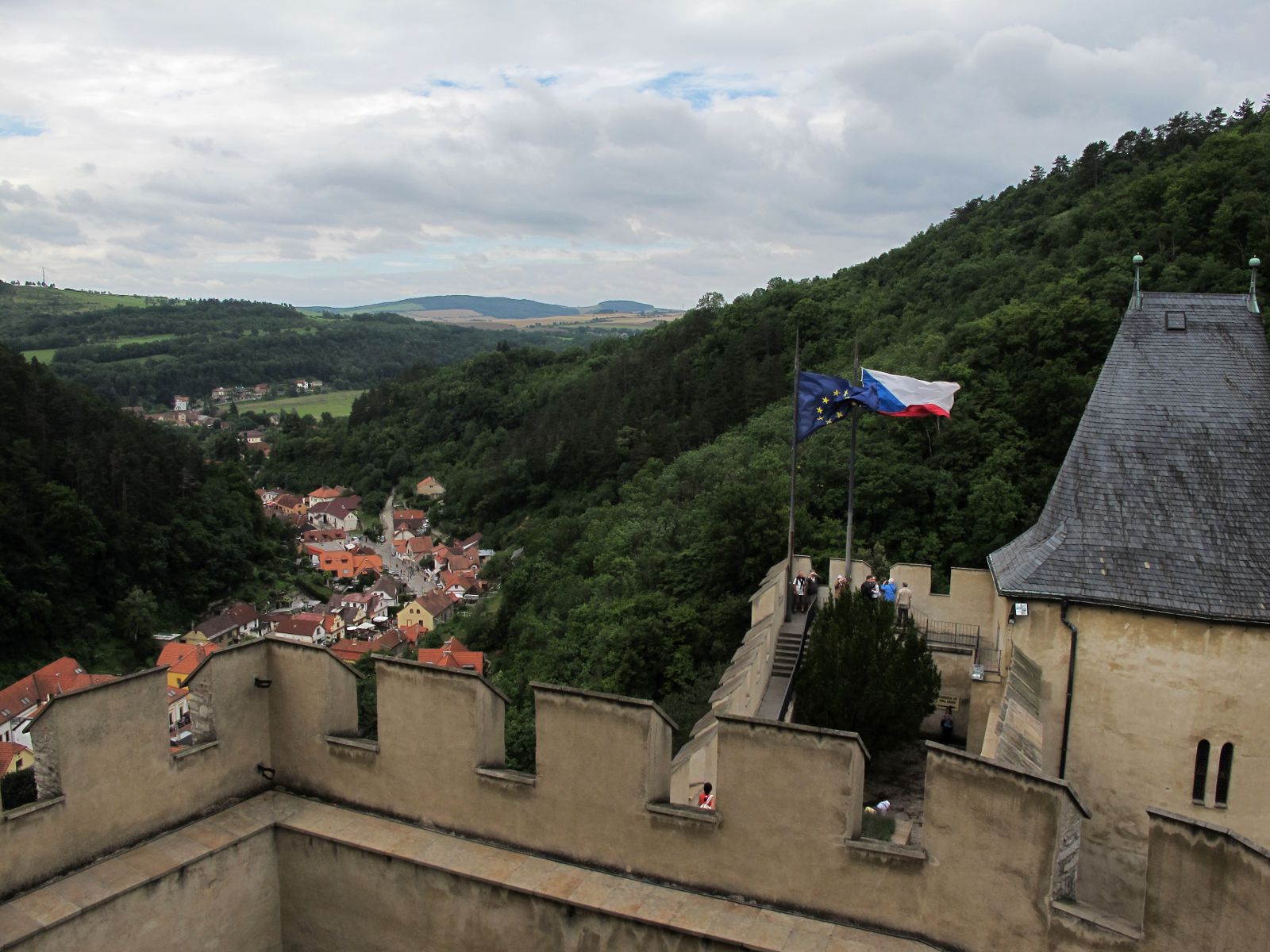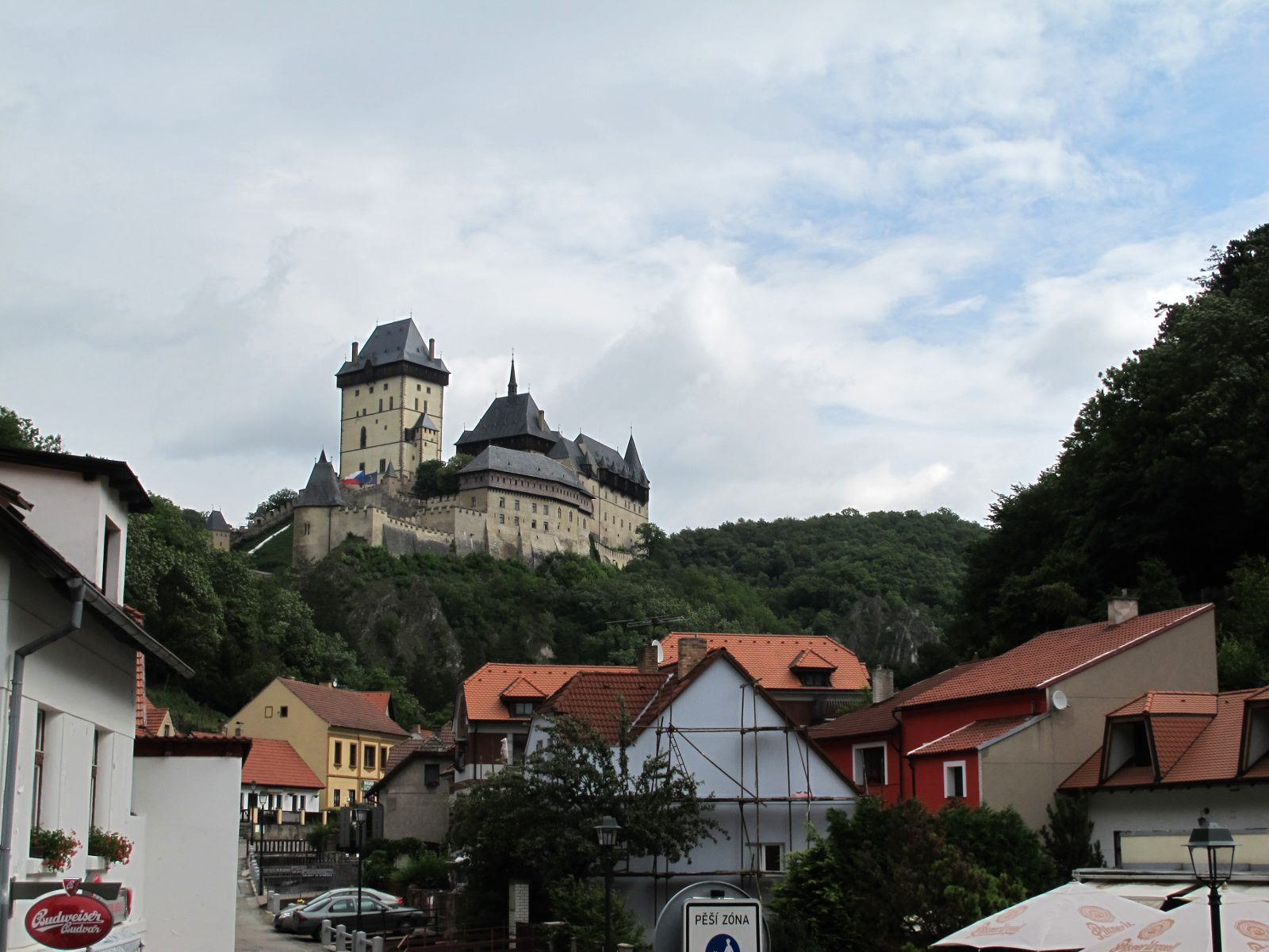 Замок Карлштейн назван в честь основателя, Карла IV. Основан в середине XIV века, построен на 70-ти метровой скале. Подъем к замку продолжается по извилистой дороге, вдоль которой торгуют сувенирами и едой.