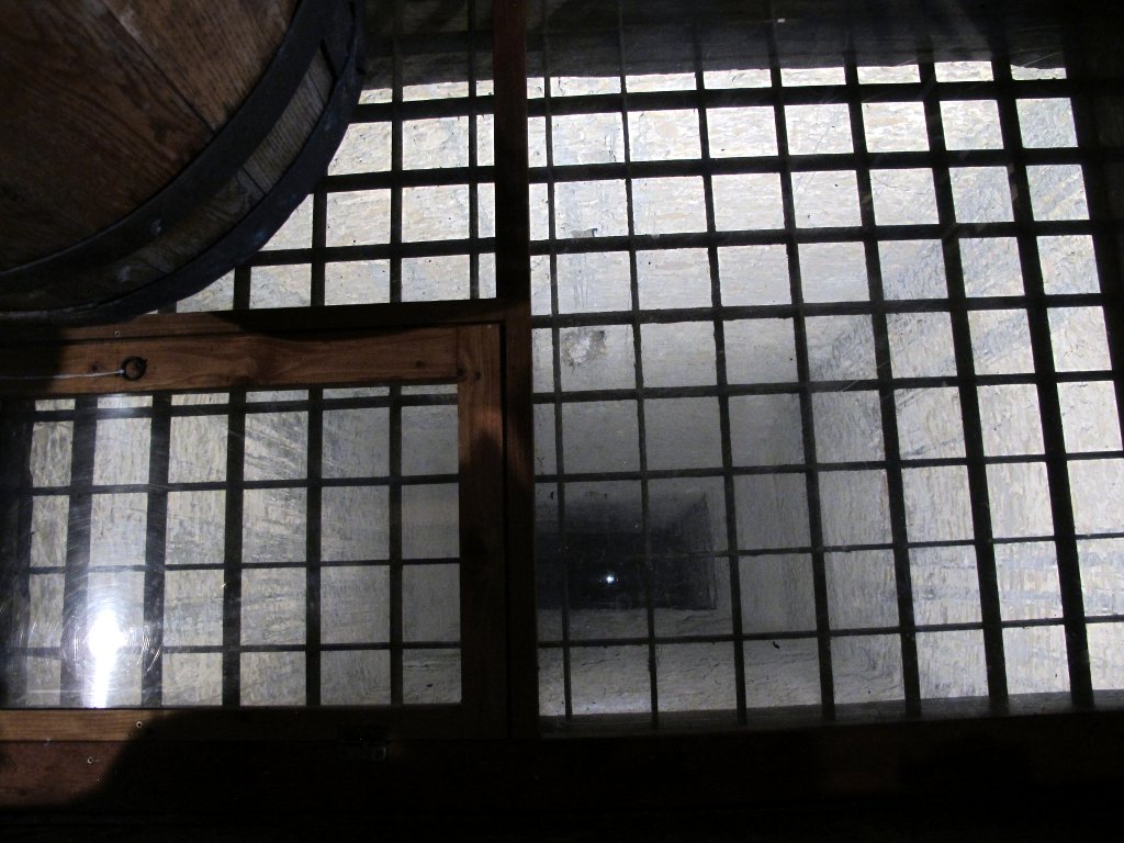 Для оценки глубины колодца внизу светится маааахонькая лампочка. Глубину колодца оценить не удалось, понятно только, что глубоко. Экскурсовод рассказывала, что в этот колодец собирается вода с очень большой площади гор: сделаны специальные водоводы. Ну а мастера, как водится в таком важном деле, после завершения работ были для безопасности казнены. Благодаря этому колодцу замок может выдерживать длительные осады, не нуждаясь в воде.