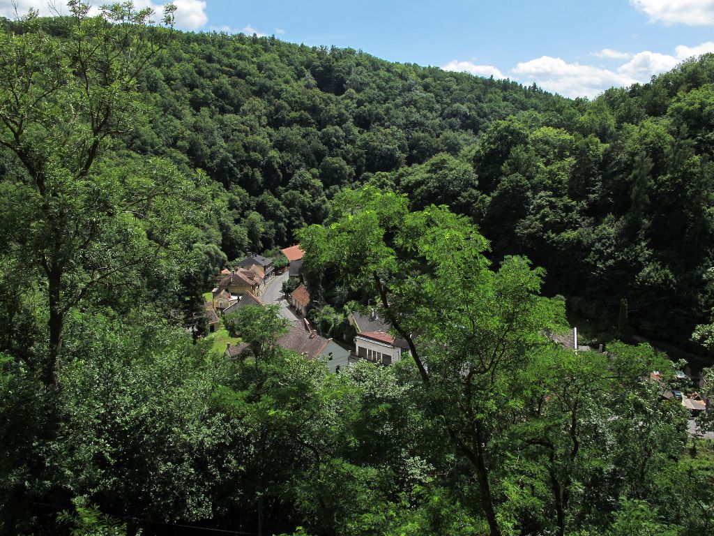 Как видно, сразу за домами начинается склон горы, поросший лесом.