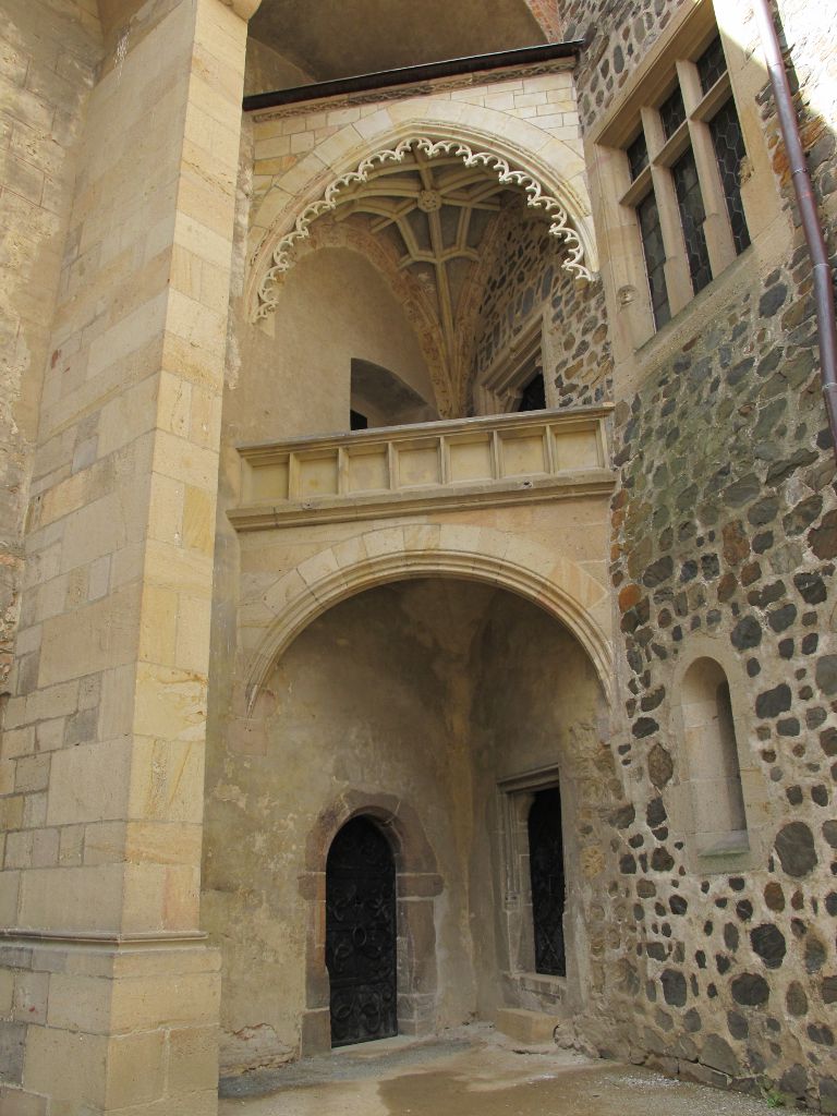 Интерьеры замка более современны и навевают мысли об эпохе мушкетеров. Замок был заложен в XII веке, он даже старше Карлштейна, однако после сильных пожаров в XIX веке он был сильно реконструирован.