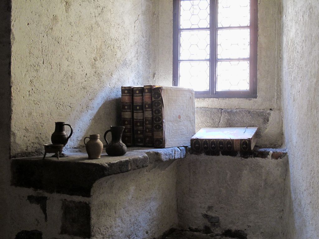 Это интерьер камеры заключенного. Вообще камера в подвале, но окошко, благодаря скале, имеется.