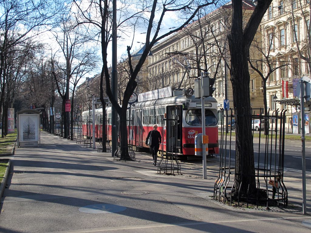 Рядом с парком встретился первый трамвайчик в Вене. Старинный.