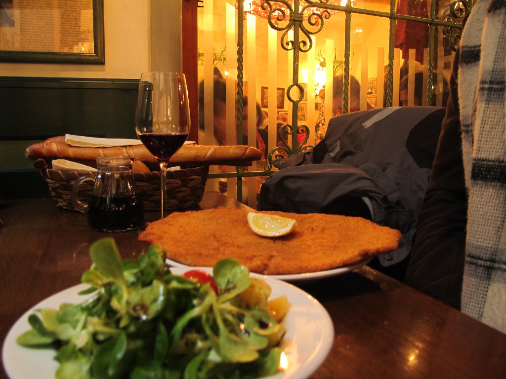 Если честно, не впечатлило. Точнее, впечатлило, до какого состоянии можно отбить кусок мяса, но по вкусу совершенно обычная еда. А вино вкусное, и форма его подачи понравилась. В бокале цвайгельт (Zweigelt)