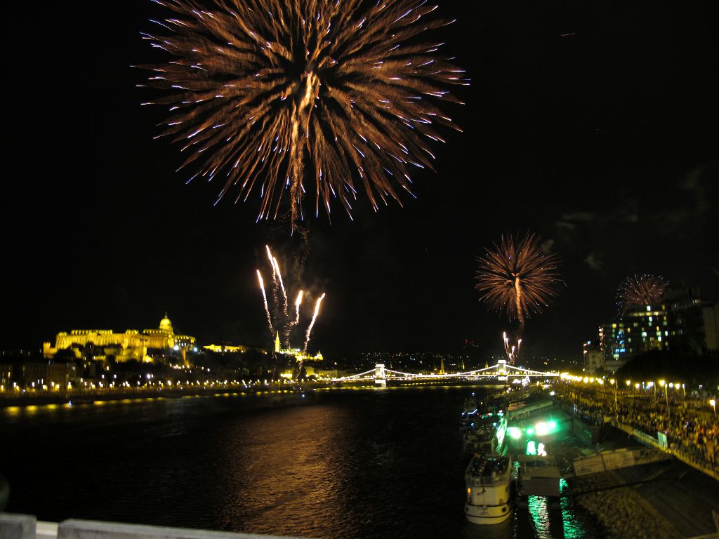 Будапешт встретил нас празднично. 20 августа в Венгрии отмечают день святого Иштвана, он же день основания венгерского государства. Выйдя из метро в центре, мы обнаружили перекрытые улицы и толпы народа, идущие к Дунаю. На мосту Эржебет было не протолкнуться