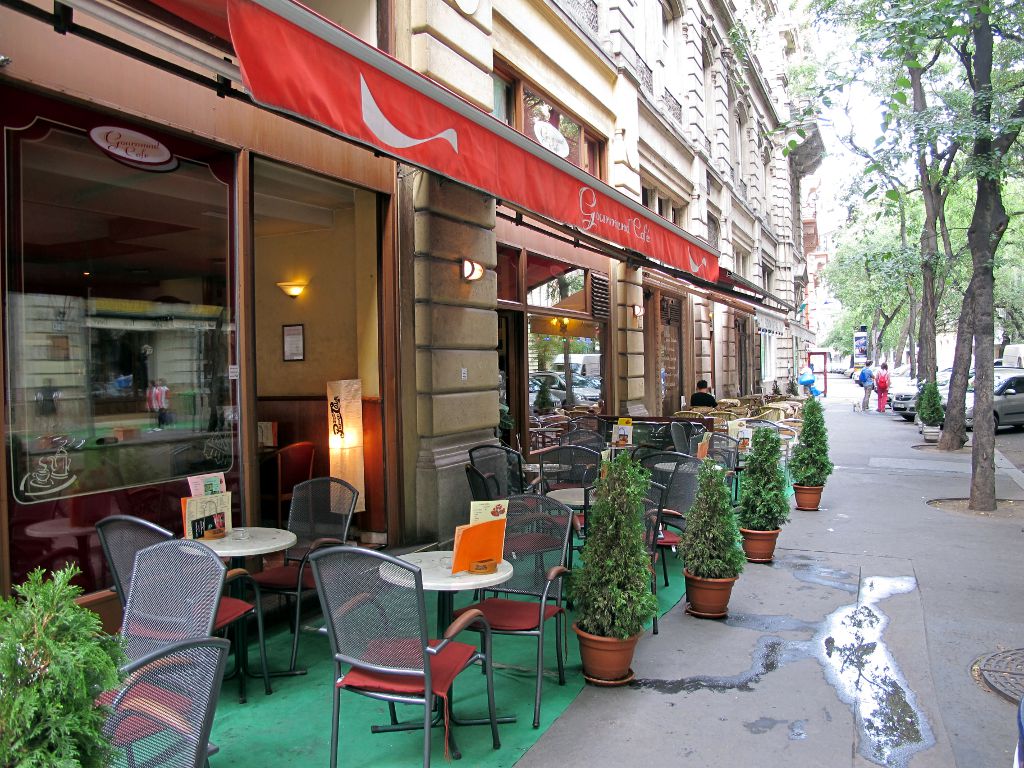 Жили мы в Пеште, поэтому до Дуная пришлось прогуляться около километра. К сожалению, город не может похвастаться чистотой на улицах. Например, меня поразило, что многочисленные кафе и магазинчики после уборки выливают грязную воду прямо на тротуар.