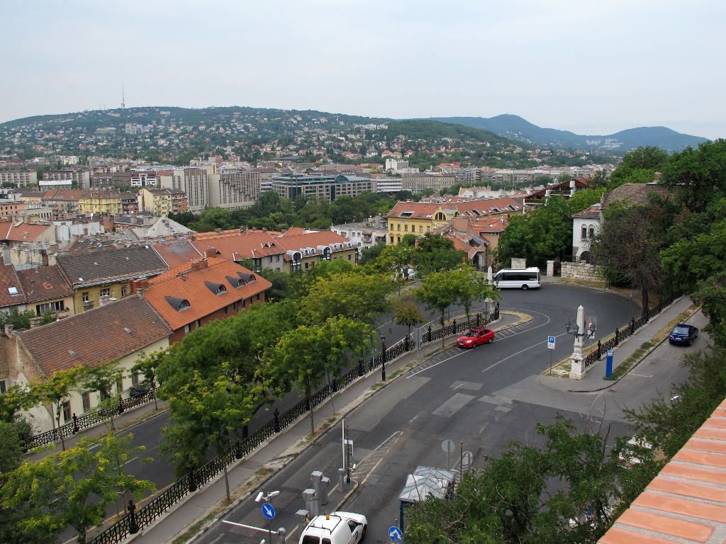 С ворот, возле здания, бросаем взгляд на город и Дунай