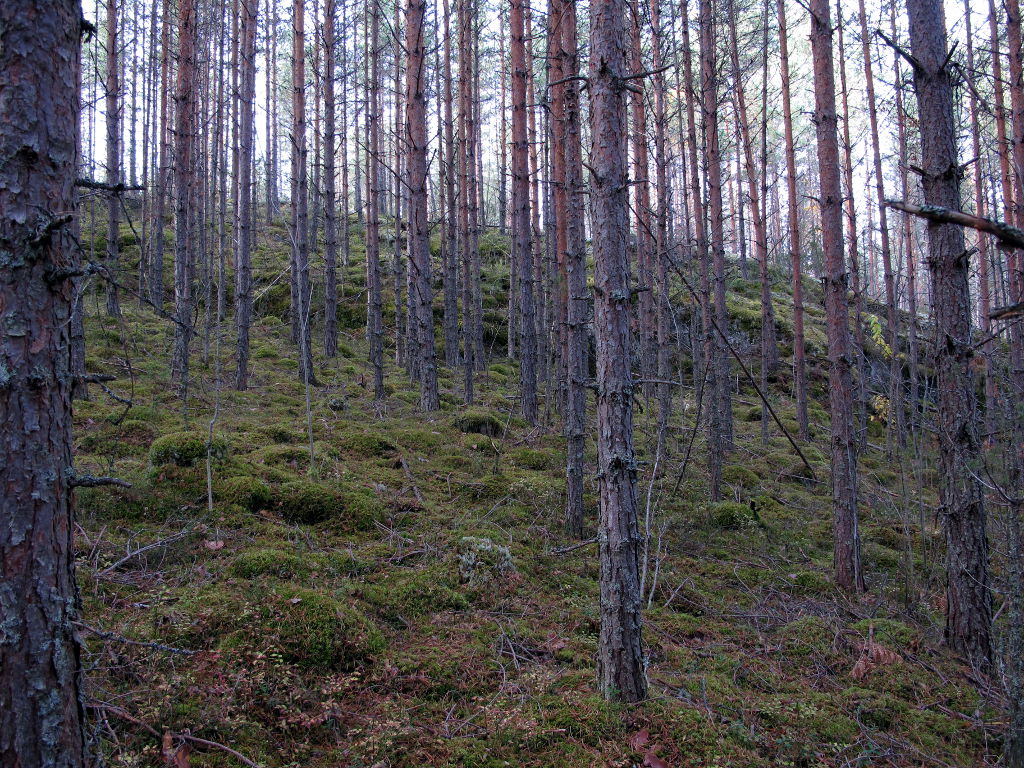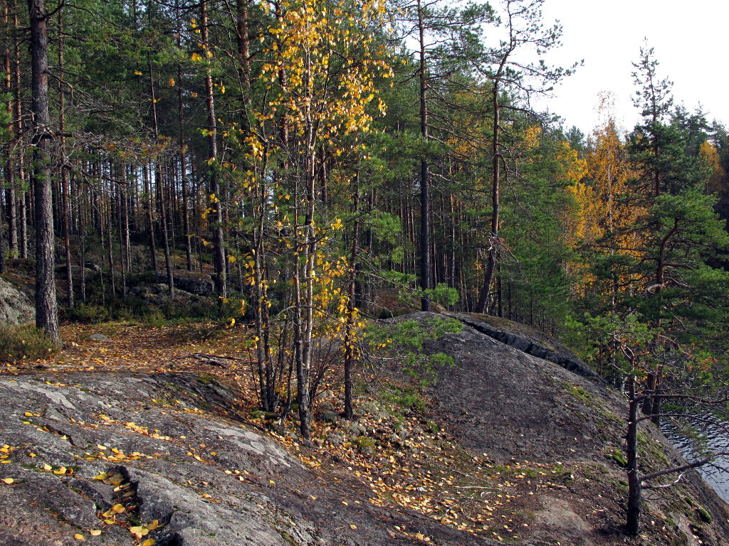 Тропинка петляет по лесу. Приходится идти сначала в одну сторону, потом разворачиваться и идти обратно. Причина — необходимо обойти многочисленные озера и выходы скал на поверхность.