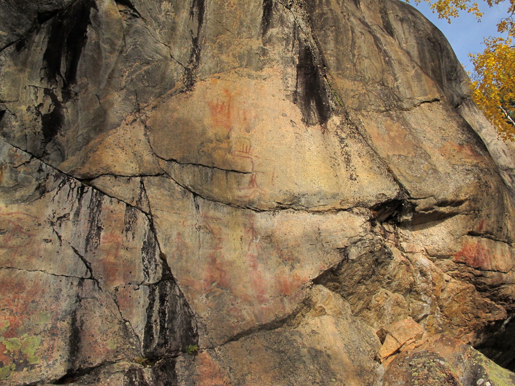 Изображения нарисованы охрой. Есть разные гипотезы, почему они сохранились на скале. Вот эта женщина с луком считается уникальной, у нее даже есть забавное название «Баба с пролива Астувансалми».