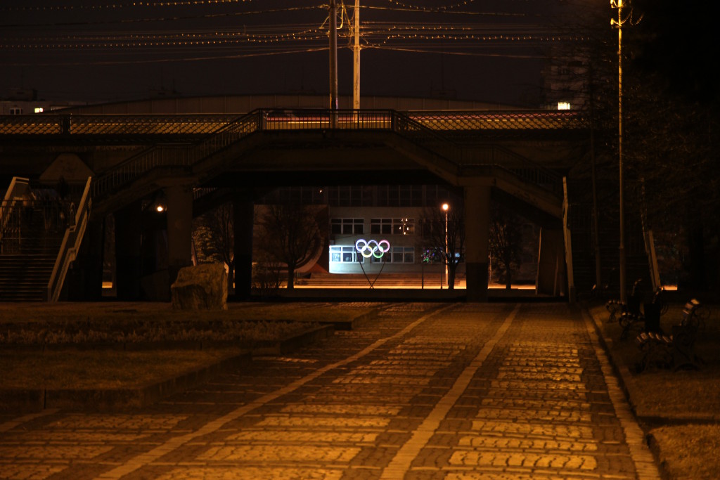Путь обратно освещали олимпийские кольца. Олимпиада ж была, однако.