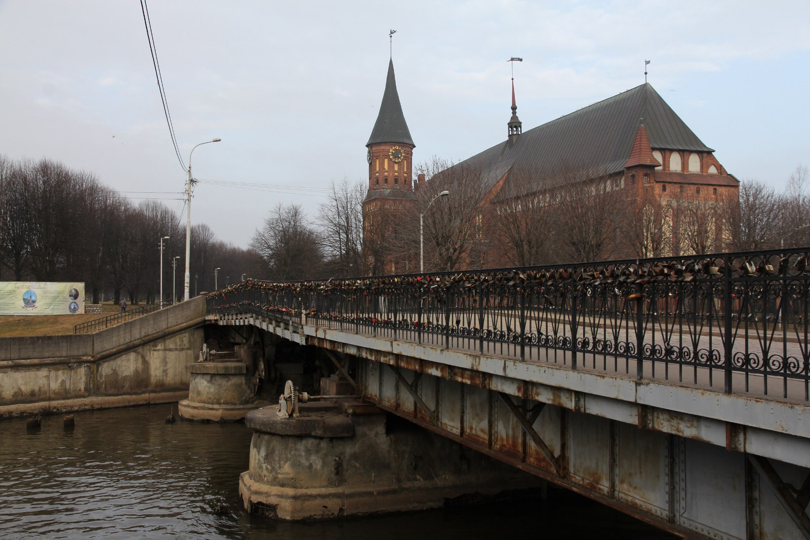 Мост к собору весь увешан замками влюбленных. Интересно, если семья разводится, они снимают свой замок? А еще у моста сохранился разводной механизм.