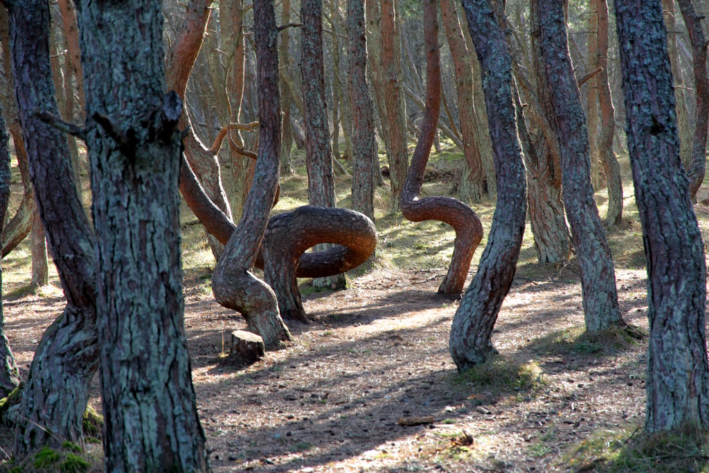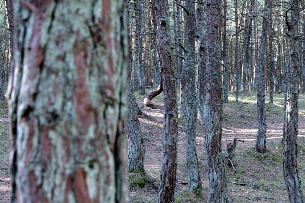 Когда едешь по Куршской косе, местами деревья растут под углом градусов 40. Это поразительно, но логично и понятно: постоянный сильный ветер. Но вот эти изгибы… Это что-то странное.