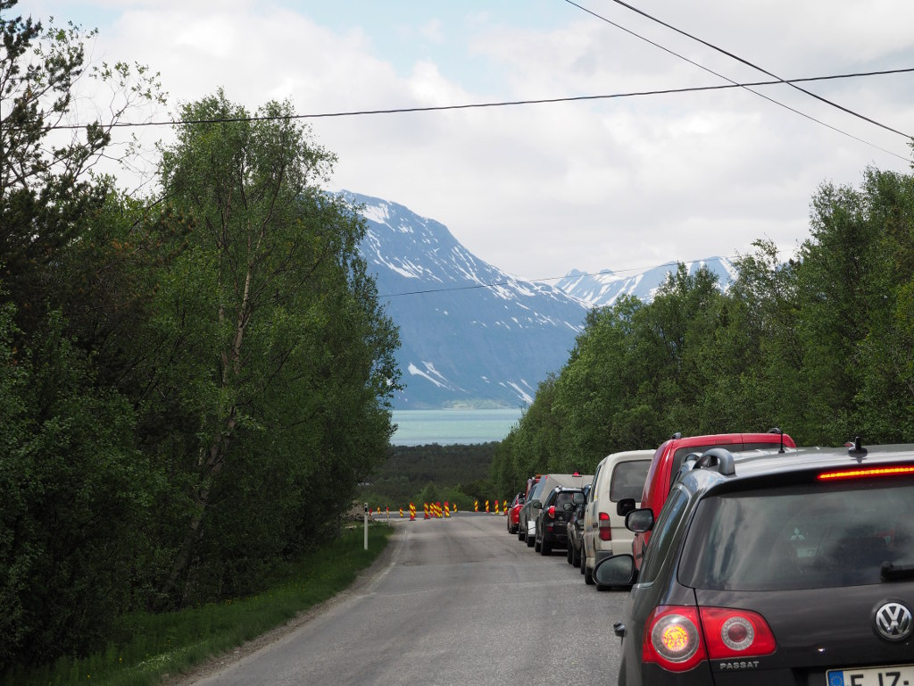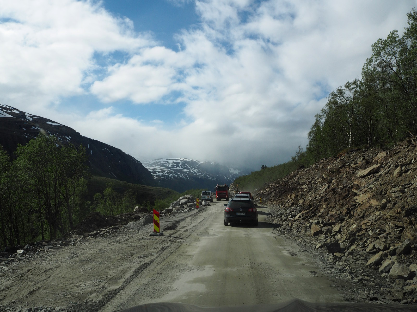 И вот граница с Норвегией пересечена. Перед нами ее пересекал дорожный рабочий из Норвегии. Кушать он ездит в Финляндию, потому что дешевле. Кризис же… Да и заправить свой Мерседес Е-класса можно почти в полтора раза дешевле. На всём экономят :)
