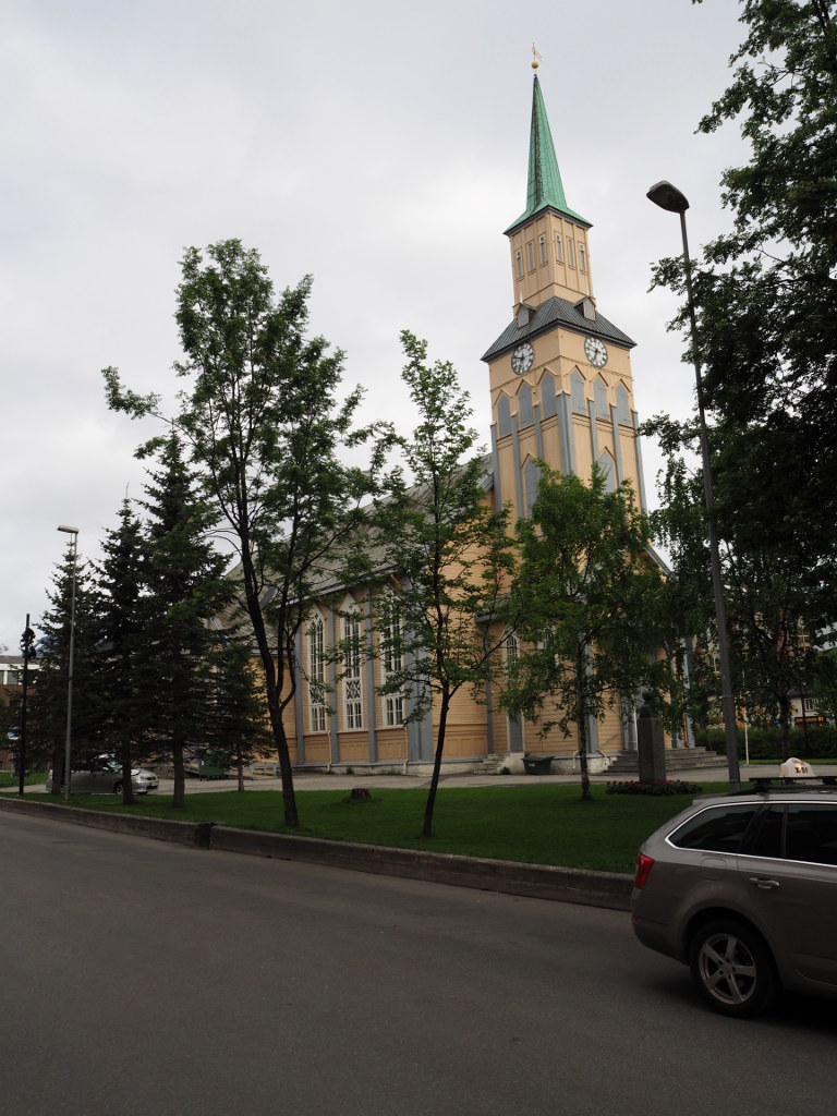 Но вот мы добрались то Тромсё. Бросаем машину, идем гулять. Городской собор вполне в финском стиле.