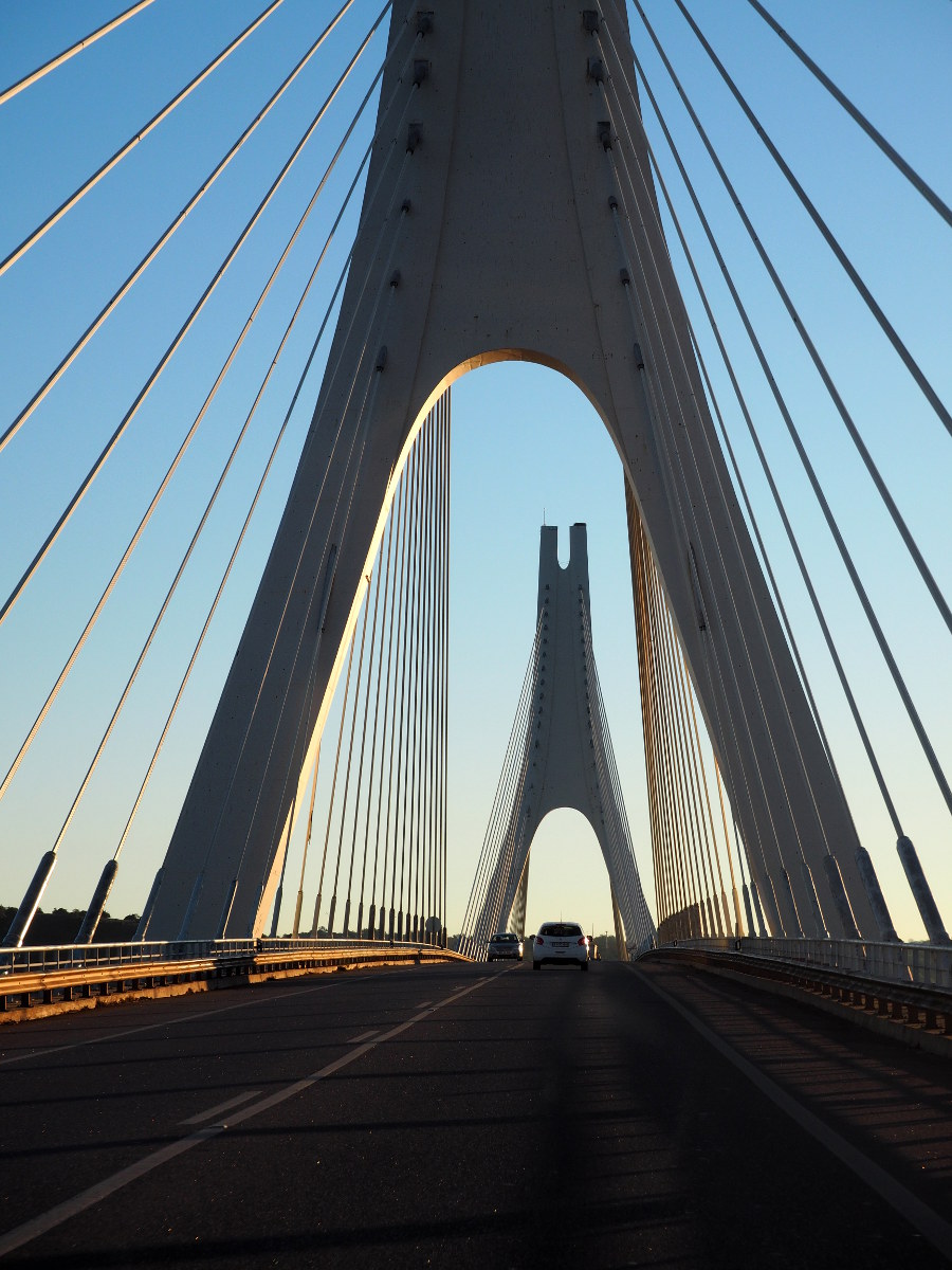 С южного побережья до восточной границы дорога предстояла дальняя, поэтому выехали пораньше. Покидаем Портимао по винтовому мосту