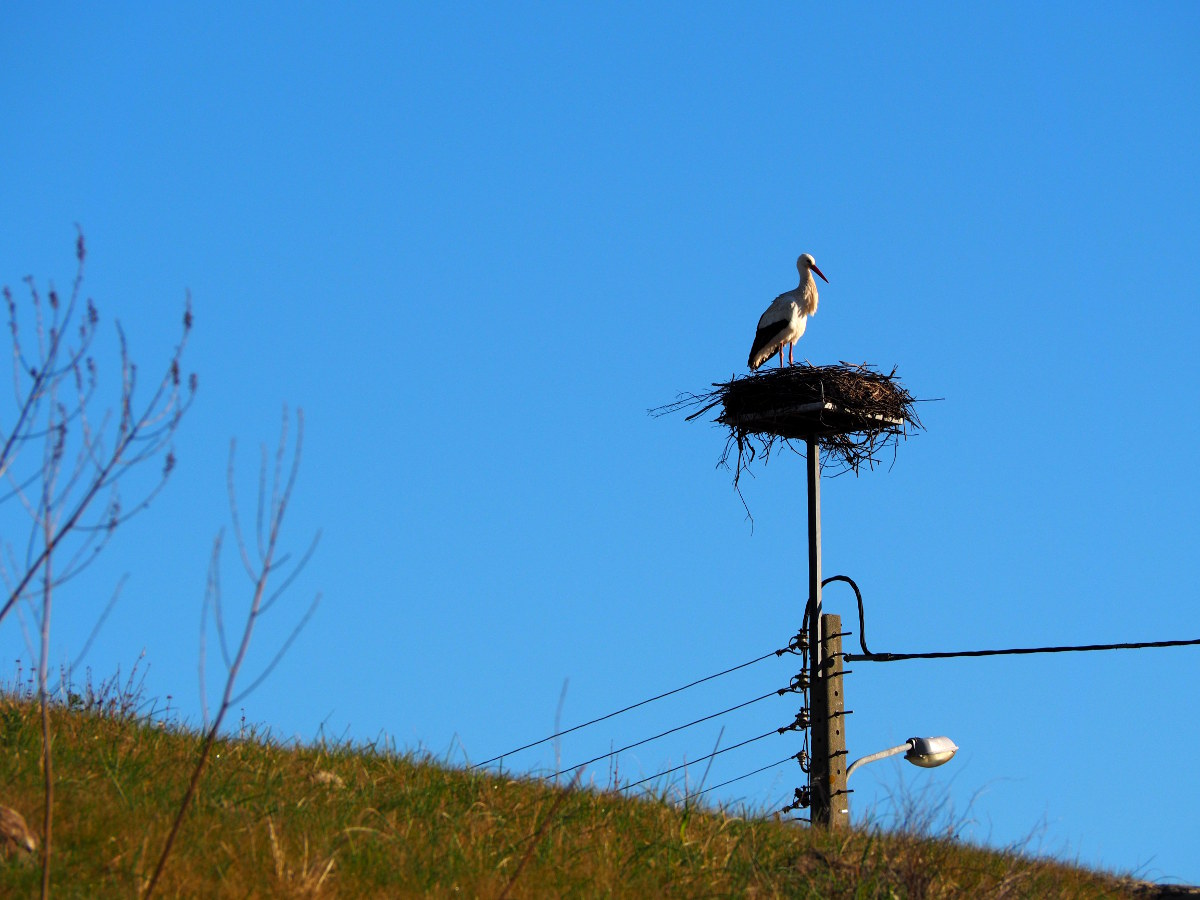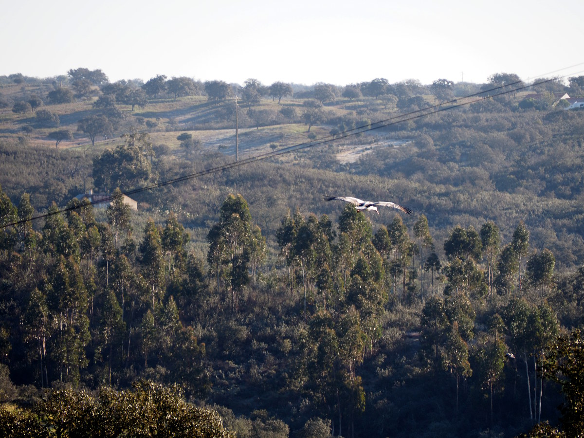 Вероятно, это аист из Псковской области. Надеялся отдохнуть от русских зимой в Португалии, но не тут-то было! Не выдержав общения с нами, аист сваливает со всех крыльев.