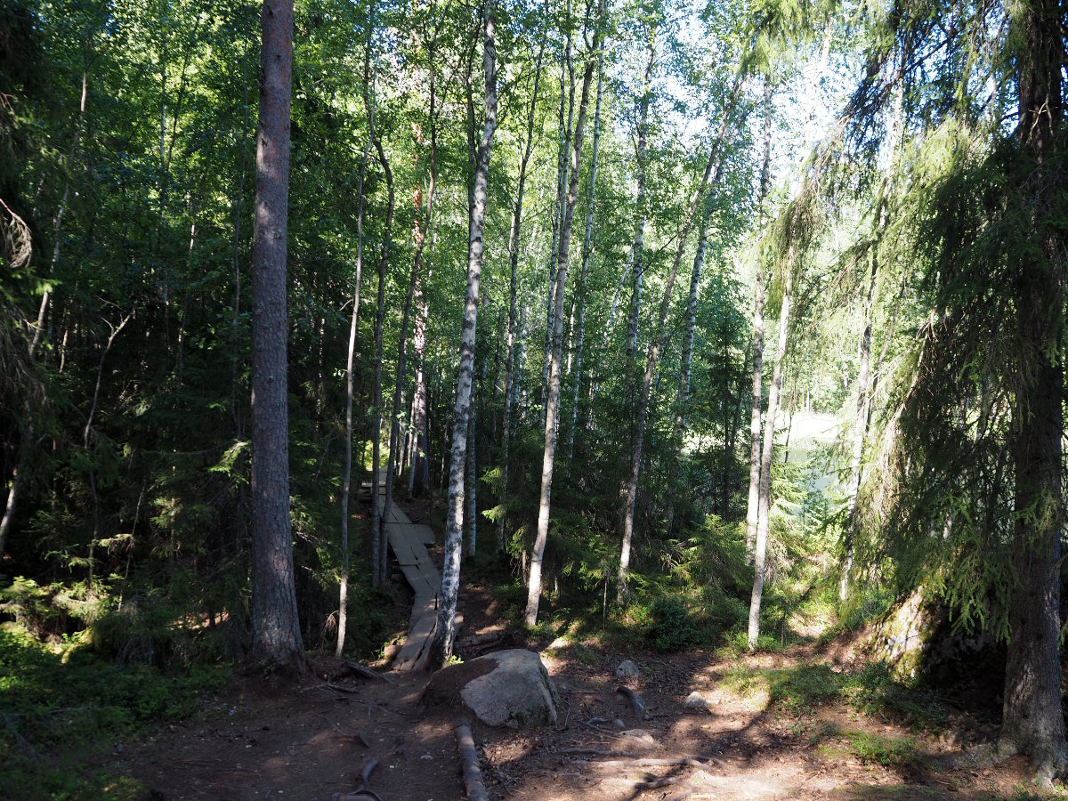 Дорожки проходят преимущественно по берегам озер. Местами даже подтоплено. Но финны не были бы финнами, если бы не оборудовали всё для удобнейшей прогулки. Там, где можно намочить ноги, проложены деревянные мостки.