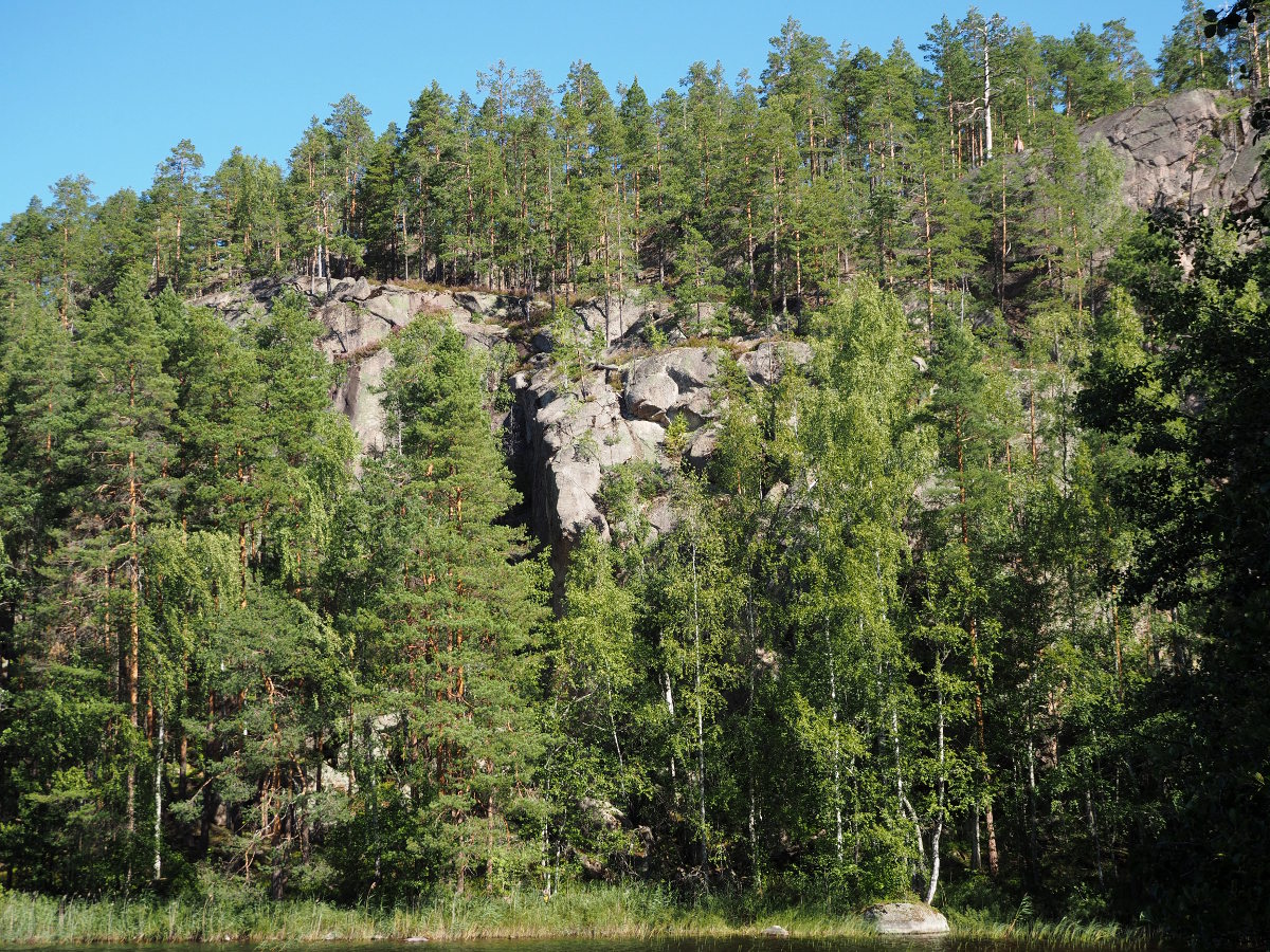 Пока фотографировал скалу, рядом фотографировалась типичная местная финская компания: двое взрослых и выводок из четерех белобрысых детишек. Видимо, собрали детвору с соседских участков и отправились заниматься спортом и образованием.