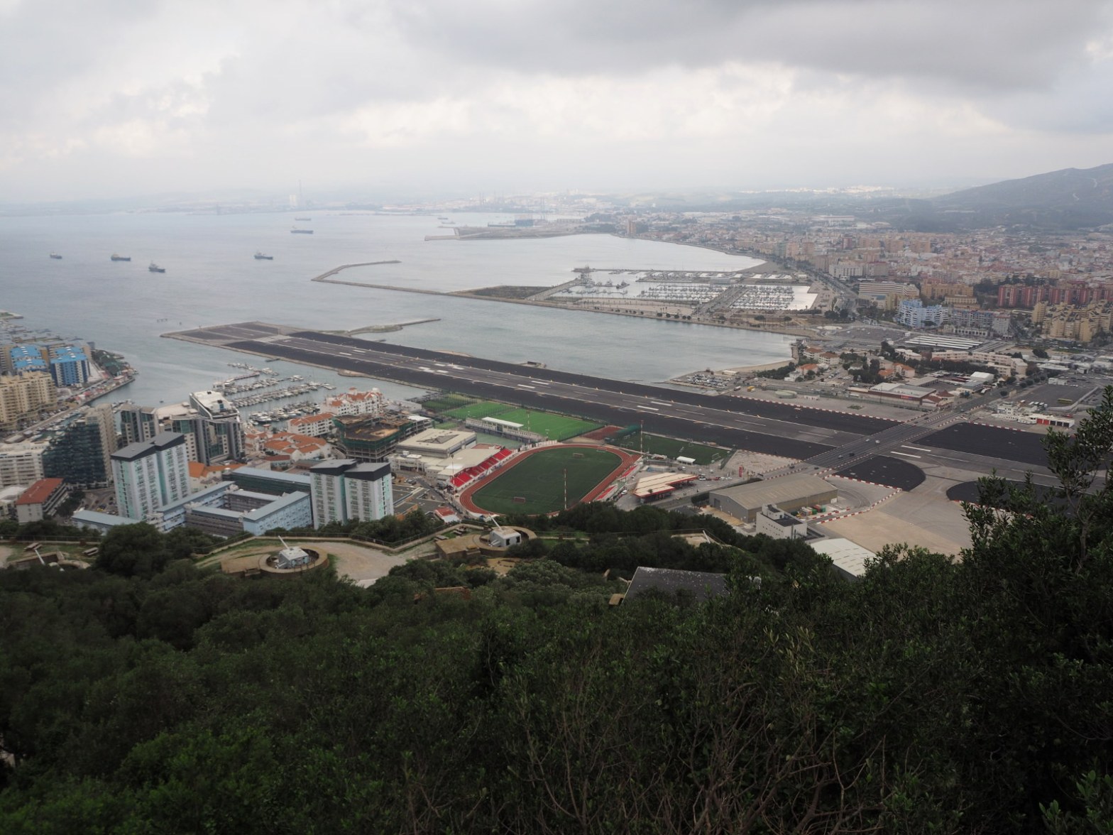 Я очень переживал, что тут окажется левостороннее движение, как никак, полуостров является частью Великобритании, но мне повезло: движение не стали менять для всех, тем более, приколов тут и без того хватает. И, главный из них, пересечение взлётно-посадочной полосы сразу по въезду на полуостров. Вид на этой явление сверху прилагается. Это один из самых интересных кадров, но ладно уж, пусть он будет в начале.
