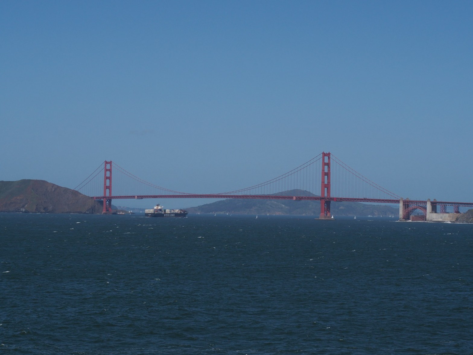По парку проходит туристическая тропа, идёт она вдоль берега. И, как только встаёшь на тропу, сразу открывается великолепный вид на Golden Gate Bridge, он же Мост Золотые ворота.