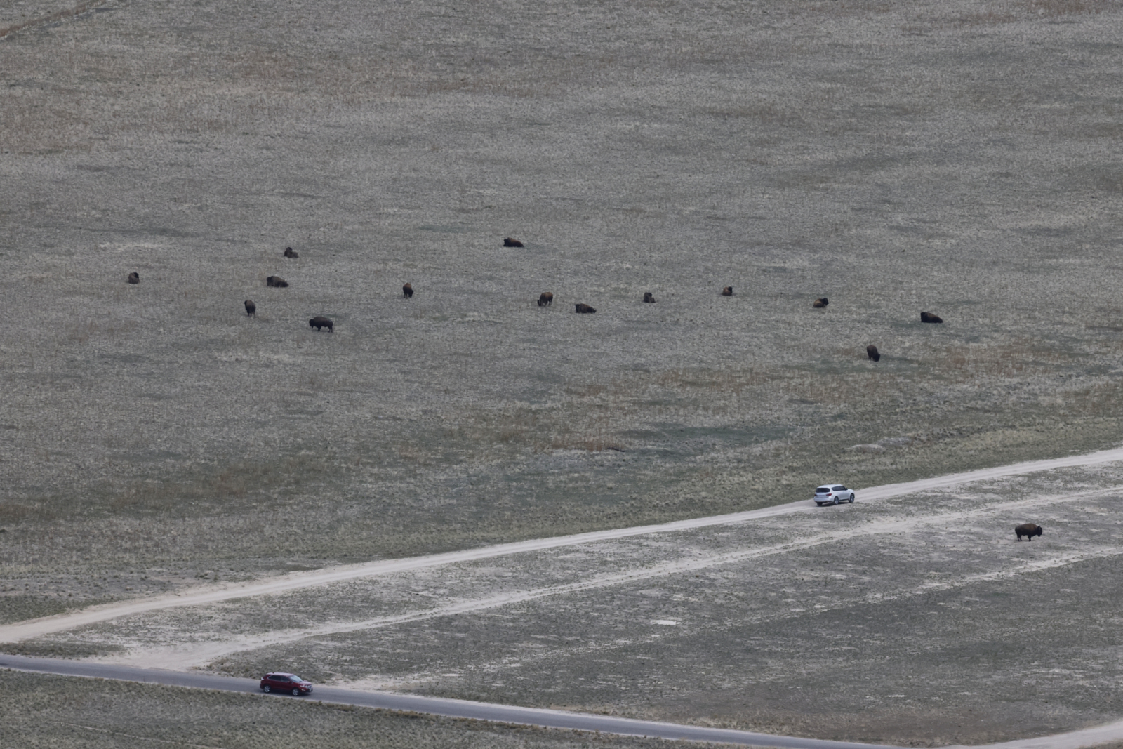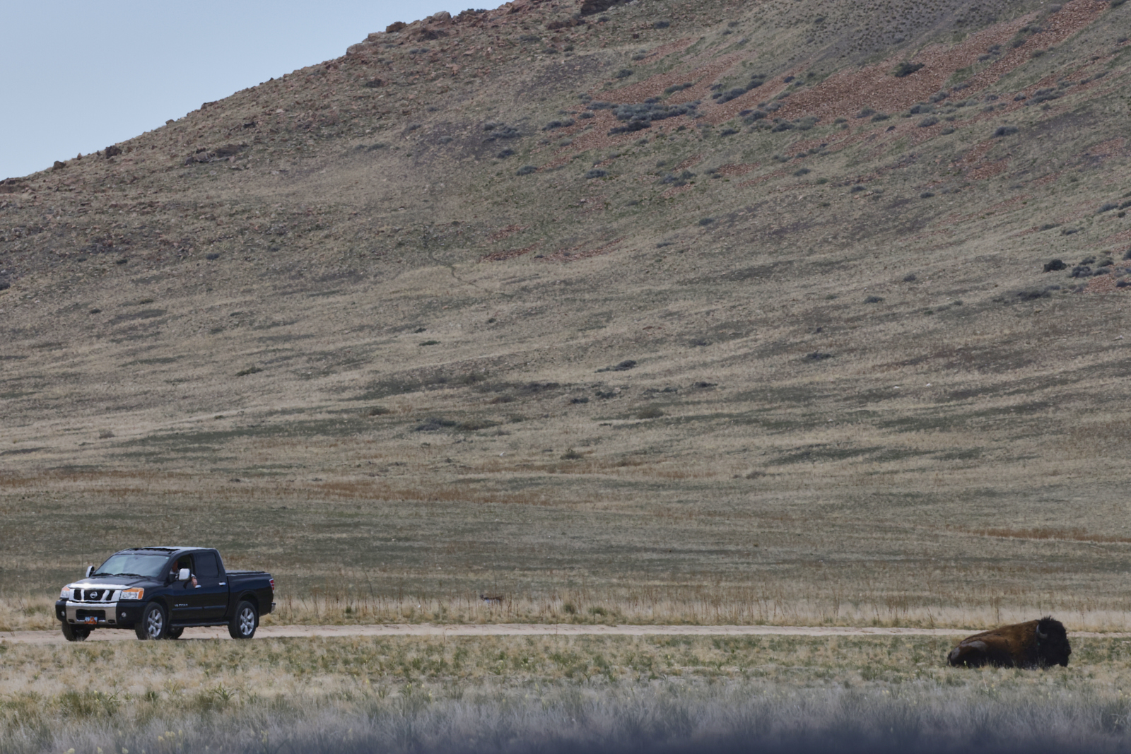 Порой бизоны эффектно переходят дорогу, нам это не повезло посмотреть, зато мы познакомились с другой загадочной зверюгой.