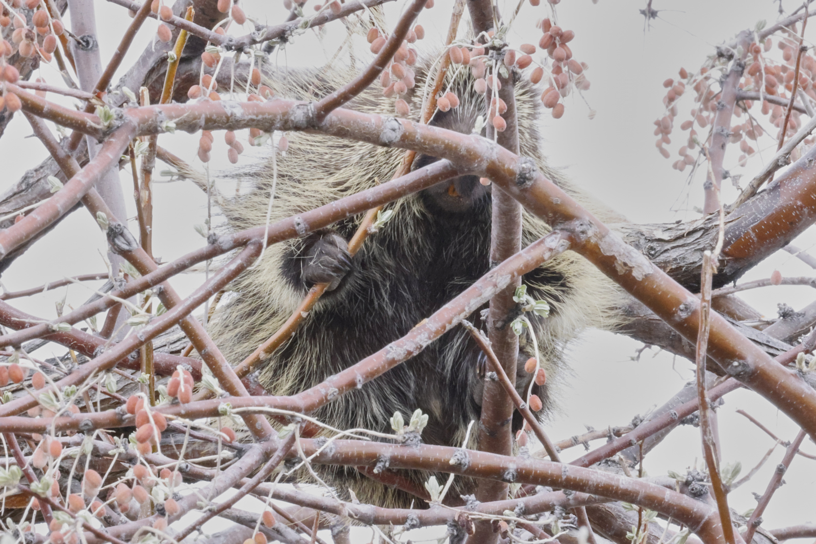 И только потом среди каких-то ягод удалось выхватить глаз. Никакой пленки не хватит на этих дикобразов!
