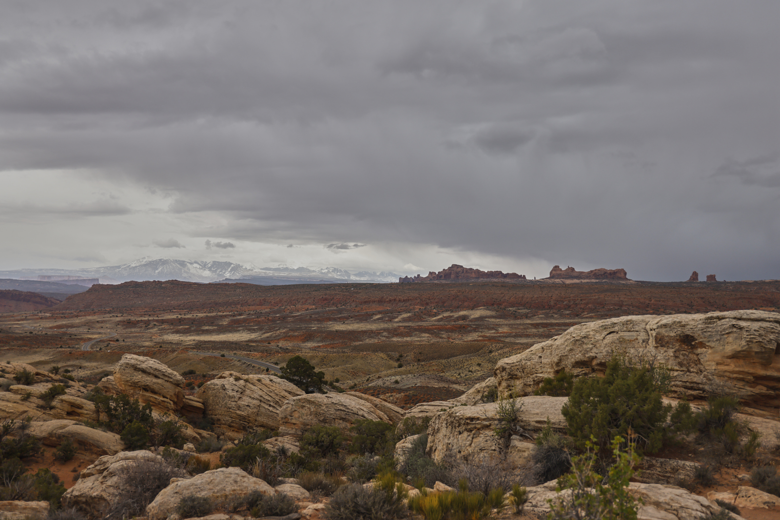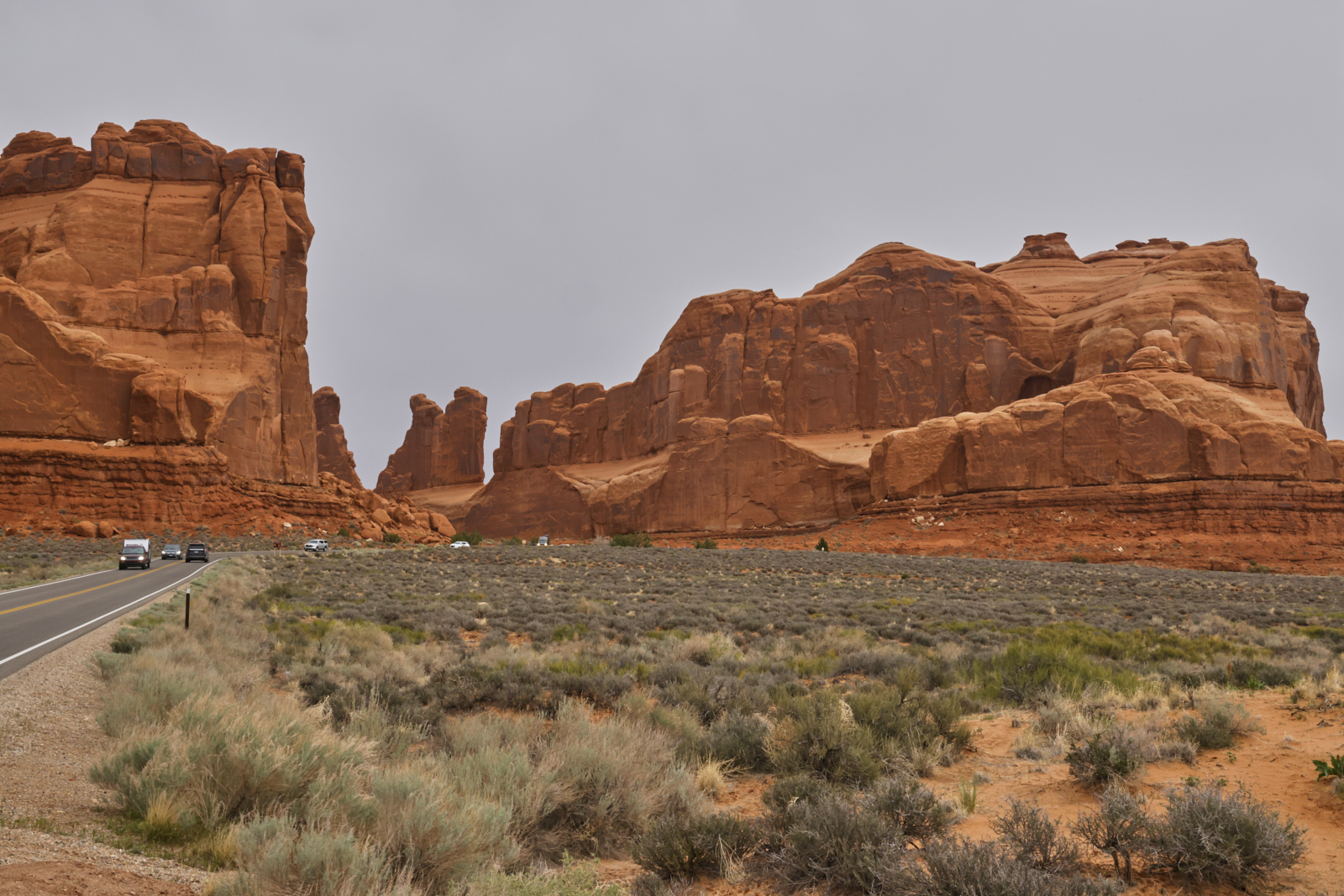 Выехали в сторону парка Arches. Заехали по дороге в гипермаркет Costco, чтобы купить чего-нибудь в дорогу и заправиться бензином. Пока мы стояли в очереди на заправку и покупали книжки про природу Северной Америки, дождь закончился.